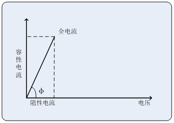 阻性電流基波 = 全電流基波.cosφ,φ為全電流對電壓基波的相角差。如圖: