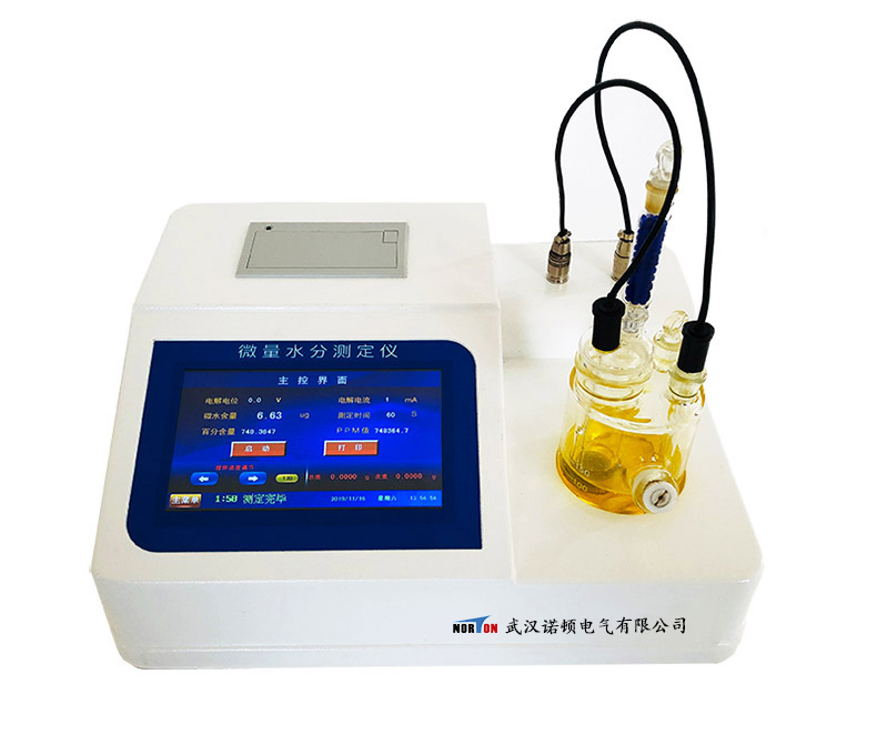 NDWS-Ⅲ型微量水分測定儀是采用卡爾—費休庫侖法,測定微量水分的儀器,適用于石油化工產(chǎn)品、充油電器設(shè)備絕緣油、醫(yī)藥、農(nóng)藥、礦物原料、鋰電池電解液、制冷設(shè)備用油及氣體等物質(zhì)中水分的測定。