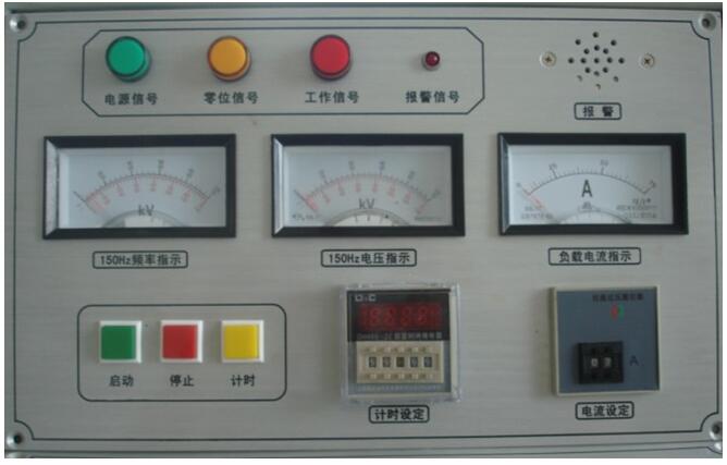3.3順時針緩慢均勻旋轉(zhuǎn)調(diào)壓器的手柄,并密切注視儀表,當(dāng)升到所需高電壓值時,應(yīng)停止旋轉(zhuǎn),并開始計耐壓時間。時間一到,及時反向旋轉(zhuǎn)手柄,直到調(diào)壓器回到零位上,零位指示燈亮。