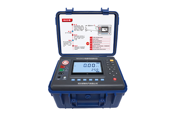 ND2501D數(shù)字絕緣電阻測(cè)試儀又名兆歐表、高壓絕緣電阻表,用于絕緣電阻的測(cè)試。本儀表具有大屏幕LCD灰白背光顯示、數(shù)據(jù)存儲(chǔ)、數(shù)據(jù)查閱、報(bào)警、自動(dòng)放電、充電、自動(dòng)關(guān)機(jī)等功能。同時(shí)還具備測(cè)量直流電壓交流電壓吸收比和極化指數(shù)功能。整機(jī)美觀高檔,量程寬廣,分辨率高,操作便捷,攜帶方便,準(zhǔn)確、可靠、性能穩(wěn)定,輸出功率大,抗干擾能力強(qiáng)。